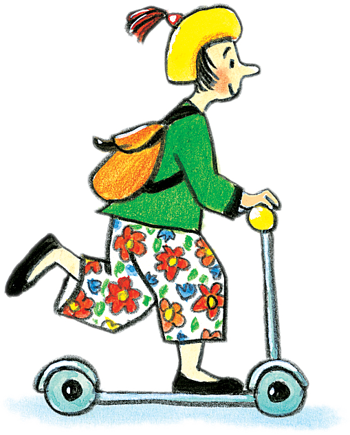 Похоже на вид из окна поезда, медленно проезжающего через город. А за окошком поезда – человечки, такие яркие, живописные «фрики», как теперь говорят. Много-много персонажей, которые тоже – «детали» и уравнены «в правах» с предметами. Человеческие лица нарисованы по принципу «точка, точка, два крючочка». При этом у каждого лица – свое выражение. Просто удивительно, что точками и крючочками можно изобразить такое количество разных выражений на лицах. Предметы (машины, игрушки, платья в магазине, посуда, воздушные шары, пищевые продукты), как и люди, живут своей «полноценной» жизнью. Они существуют на грани «одушевленности» и нередко вступают с персонажами-людьми в игровое общение.